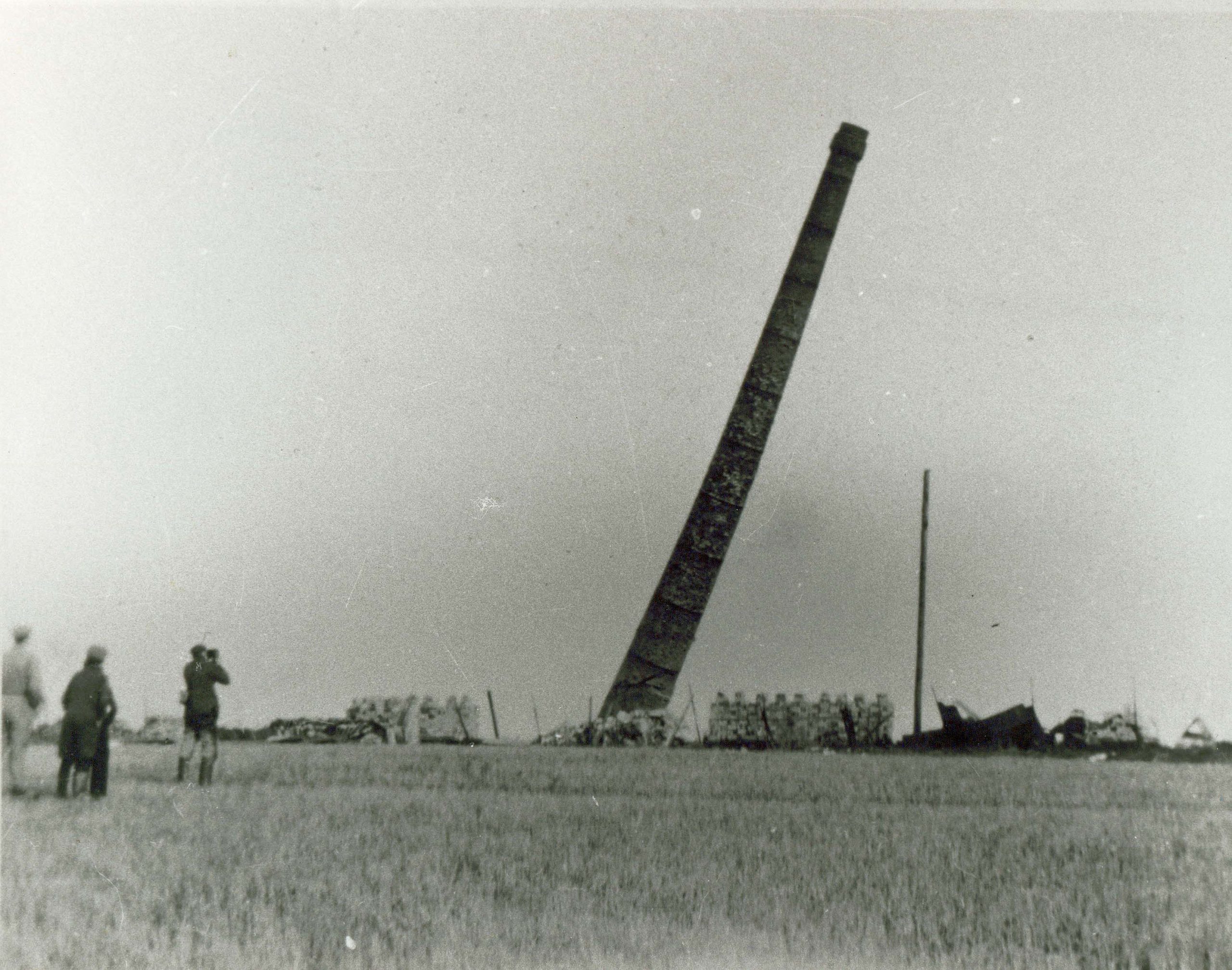 Destruktionsfabrikkens (i daglig tale: Raggeriet i Bro) skorsten væltes